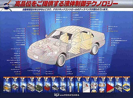 自動車部品のあらゆるところで、ナカリキッドコントロ一ルのディスペンサが使われています。
