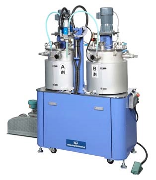 - 2. 2基のギアポンプを2つのモータで個別に駆動することにより、吐出スピード、配合比率や吐出量の可変も自由に行えますので品種の切り替えなどのも対応できます。