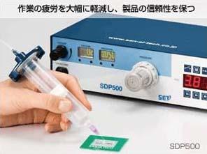 ディスペンサーSDP500 は手作業から自動機搭載まで幅広く対応するハイクラスディスペンサーです。デジタル化により条件設定が容易で高精度、連続安定吐出を実現します。吐出完了信号を標準装備し、手作業から自動機搭載まで対応します。